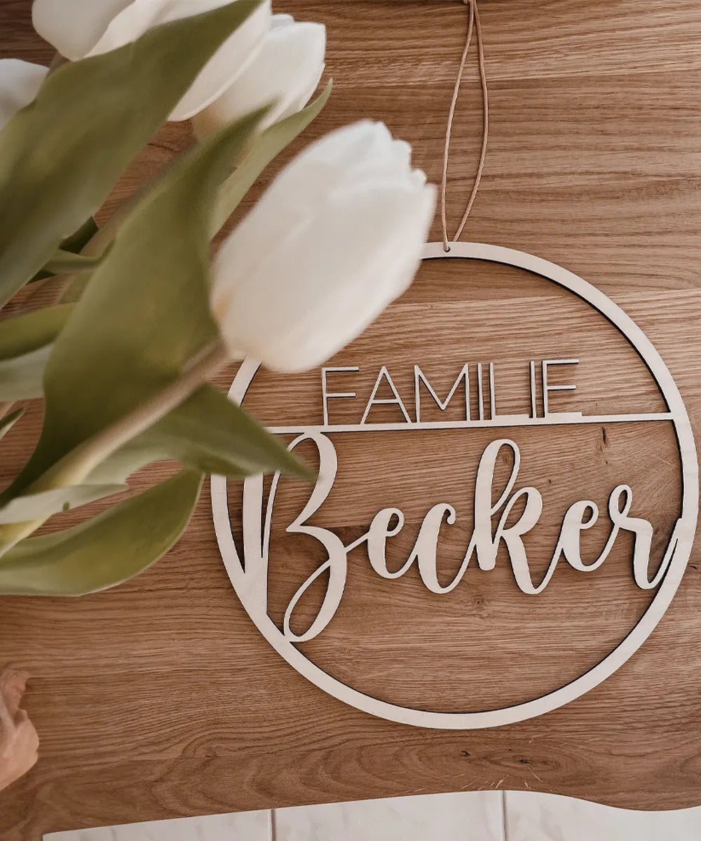 Mit einem Familien-Namensschild wird aus jedem Raum sofort ein Zuhause. Perfekt auch als Geschenk zum Einzug.